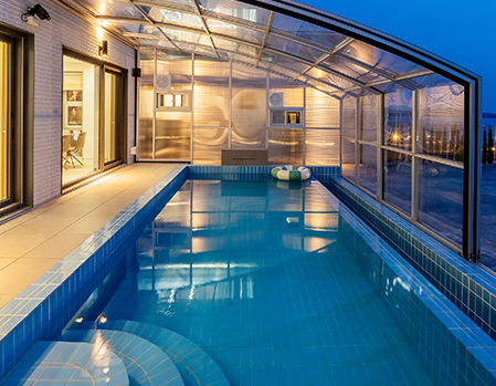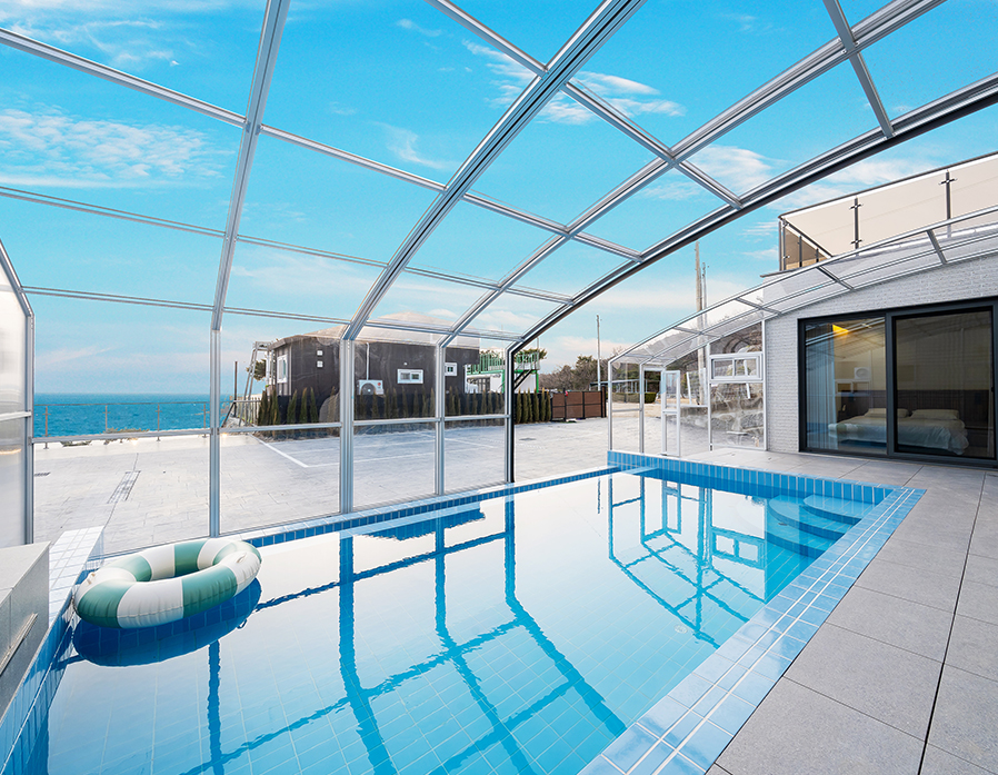 모채, 담채 객실별 단독 이용하실 수 있는 온수풀입니다. 상시 운영되며, 이용 희망 시 사전 문의 바랍니다. 수온: 34℃ 크기: 7m*3m (수심 1.1m) 여름 시즌에는 온수기능 없이 시원하게 이용 가능합니다. 이용료 무료
