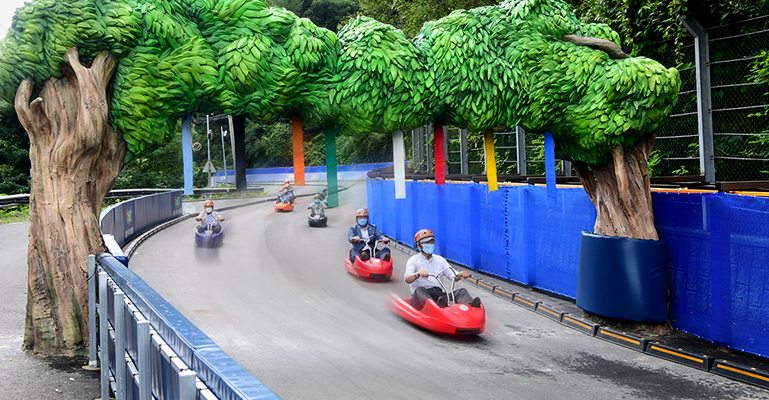특별한 동력장치 없이 특수 제작된 카트를 타고 땅의 경사와 중력만을 이용해 트랙을 내려오는 다이나믹한 체험 레포츠시설로 방향조정과 제동이 가능하며, 어린이부터 어른까지 누구나 즐길 수 있는 무동력 바퀴 썰매입니다.